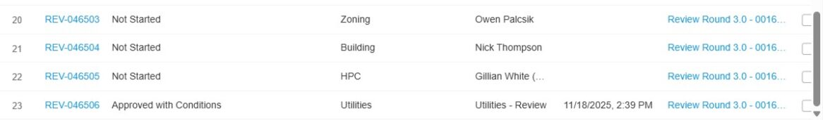 Round 2 response comments were submitted back to the City on 11/11/2025. Review status as of 12/03/2025: